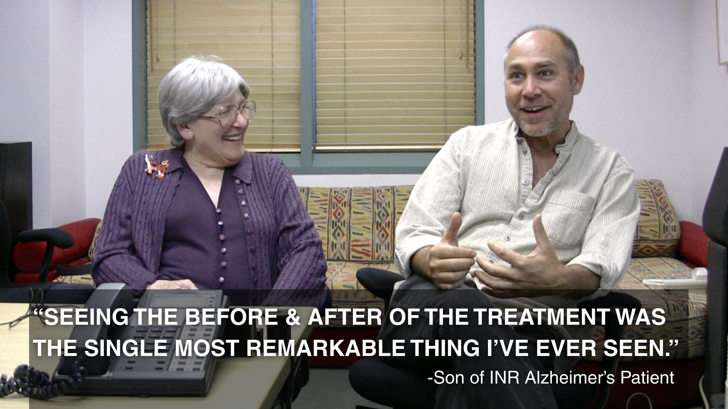 - Diagnosis: A consultation is necessary before treatment can be scheduled. To receive treatment at INR, our medical staff will need to review the patient’s medical records, including laboratory tests and MRI imaging, to confirm the patient’s diagnosis of probable Alzheimer’s disease.